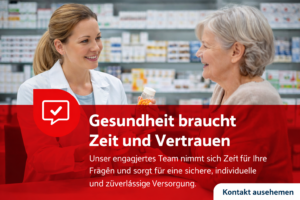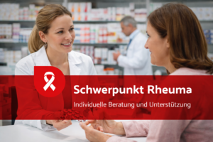 Als moderne Apotheke mit Schwerpunkt Rheuma bieten wir Ihnen eine umfassende, sichere und persönliche Gesundheitsversorgung. Von der individuellen Beratung bis zur langfristigen Therapiebegleitung stehen wir Ihnen kompetent zur Seite.